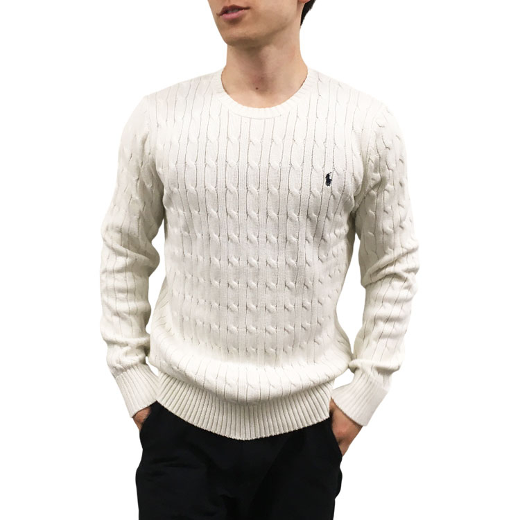 [ネットストア限定特価]【POLO RALPH LAUREN/ポロラルフローレン】コットン ケーブルニットクルーネックセーター ホワイト ボーイズXL