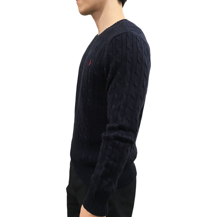 [ネットストア限定特価]【POLO RALPH LAUREN/ポロラルフローレン】コットン ケーブルニットクルーネックセーター ネイビー ボーイズXL