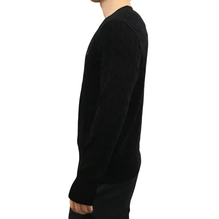 [ネットストア限定特価]【POLO RALPH LAUREN/ポロラルフローレン】コットン ケーブルニットクルーネックセーター ブラック ボーイズL