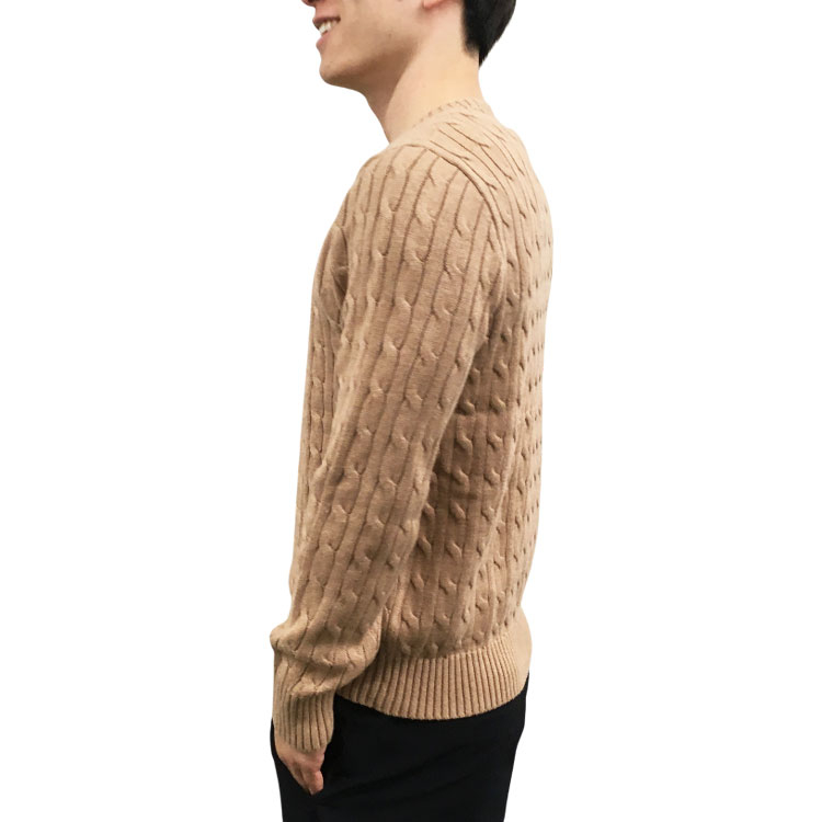 [ネットストア限定特価]【POLO RALPH LAUREN/ポロラルフローレン】コットン ケーブルニットクルーネックセーター キャメル ボーイズXL