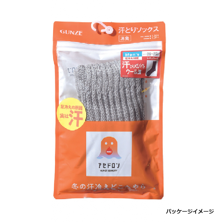 【アセドロン】靴下 汗とりメガパイル レギュラー丈 25-27cm ブラック