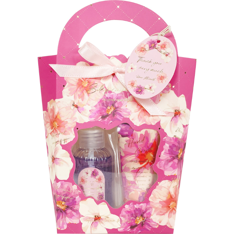 - ハンドクリームは「触れるたびに優雅な気分を」、ボディミストは「香りで華やかな気分を」といったあなたを思いやるボディケアセットです。