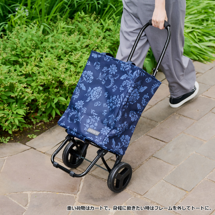 - コンパクトかつ容量たっぷりのトートバッグ型カート。取り外してショルダーバッグになる2way仕様だから、アクティブに使えて便利です。