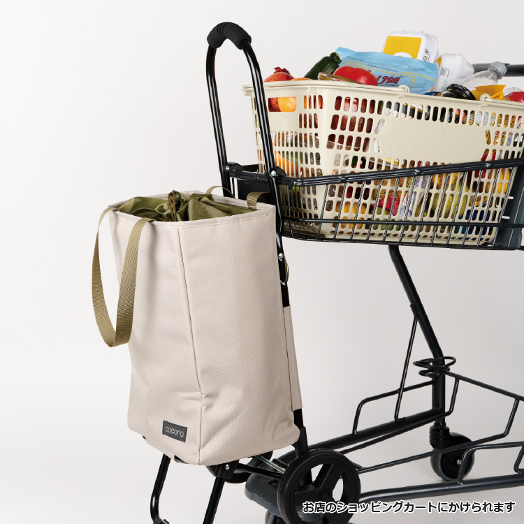 - スーパーのカートにかけられるフック付きでお買い物中のカートの置き場に困りません。