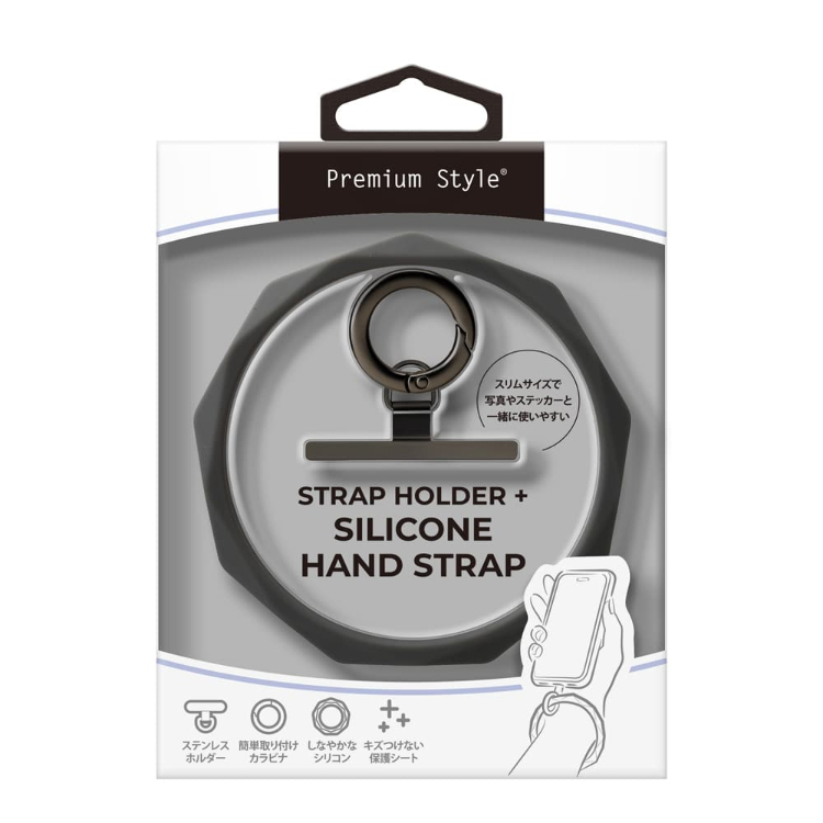 ストラップホルダー付 シリコンハンドストラップ [ブラック]