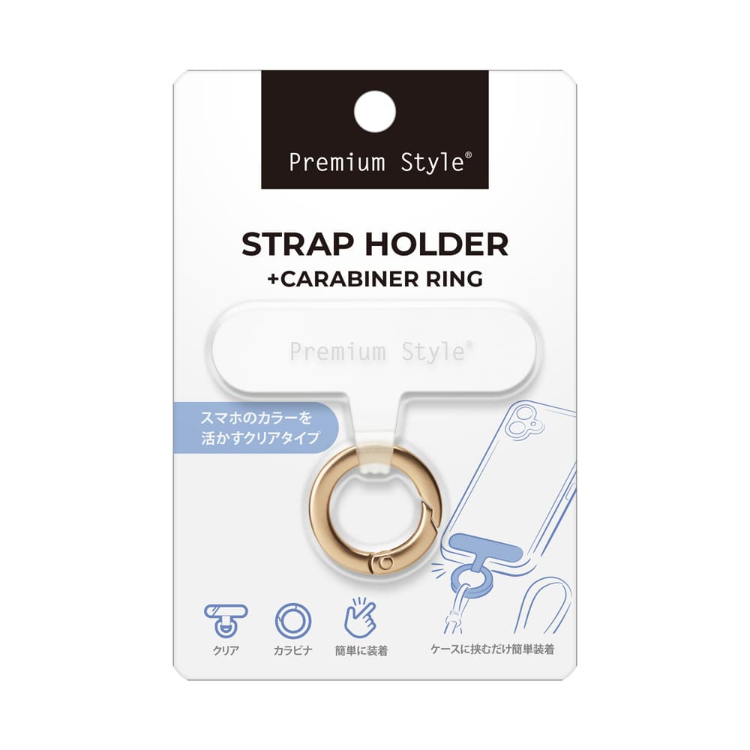 - ストラップホールのないケースに挟むだけでストラップが付けられるカラビナリング付きストラップホルダーです。