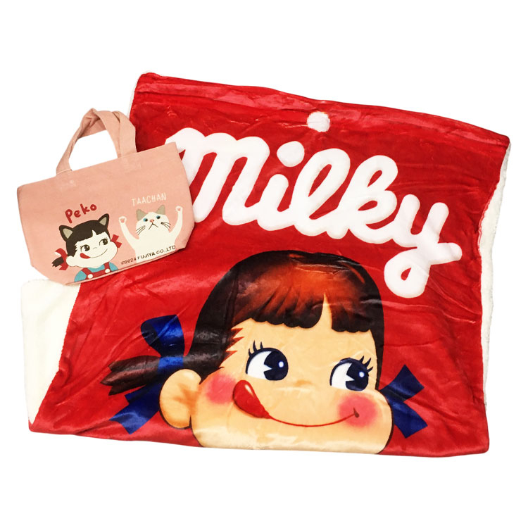 - 大人気キャラクター ペコちゃんのブランケットと、持ち運びに便利なミニトートバッグのセット!