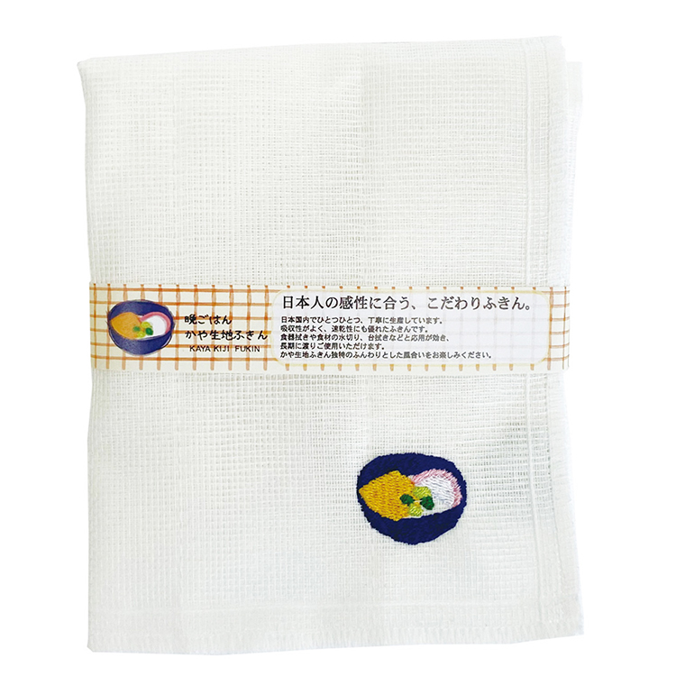おいしそうな晩御飯をモチーフにしたかや生地ふきん