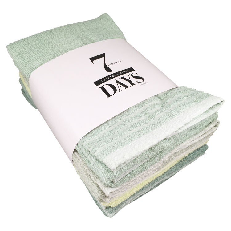 • 1週間日替りで楽しめる7枚セットのフェイスタオルです。