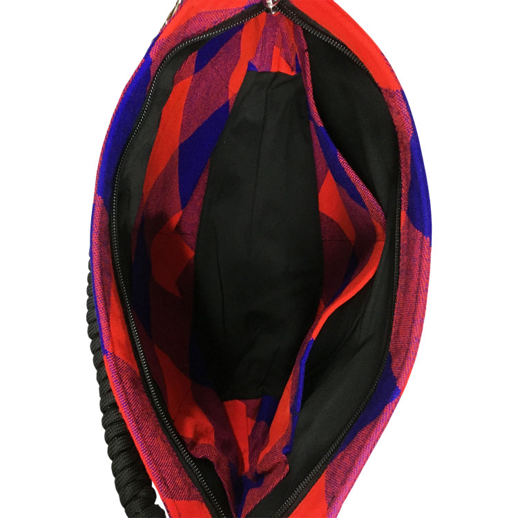 - イタリアの元ブラッチャリーニ会社を通し、ケニアでアフリカ現地の方々の生活を支援する、国連とタイアップして作られたケニアの生産工場で、マサイ族が身にまとうマサイシュカの生地を使用して作られてます。持ち手など細部にもこだわりのあるバッグ。外側にファスナー付きの大きなポケット1つ。ファスナー無しポケット有り。内側は8箇所に区切られたポケットがあり、使い勝手も◎