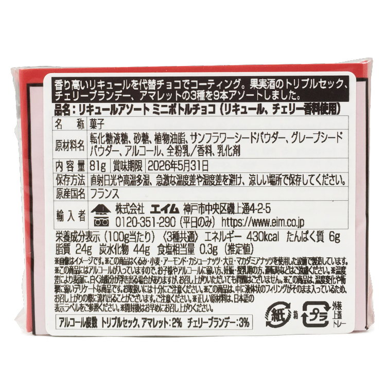 • 果実酒のトリプルセック、チェリーブランデー、余れっとの3種を9本アソートしました。