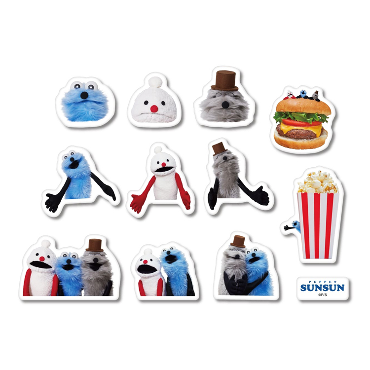 SNSで大人気のパペットスンスンから「マシュマロシール」が登場!さまざまな表情やポーズを使用しており、プニプニ素材で立体感のあるシールがかわいいです。