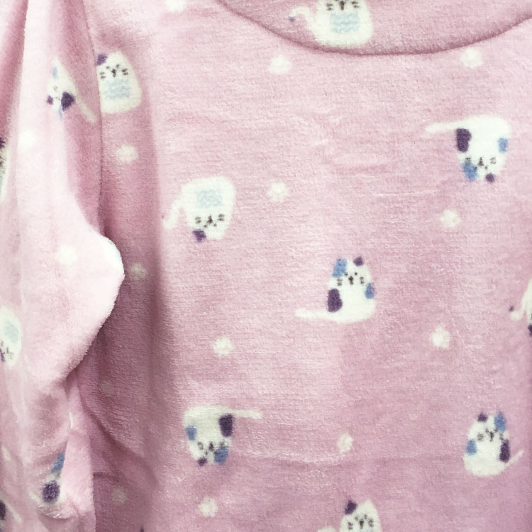 [ネット限定クリアランスセール]マイクロファイバープリント上下セット ネコ ピンク M~L
