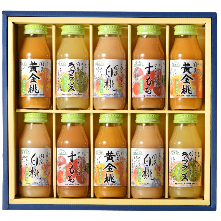 - 国産ラフランス・長野県産すもも各2本、国産黄金桃・国産白桃各3本/各180ml