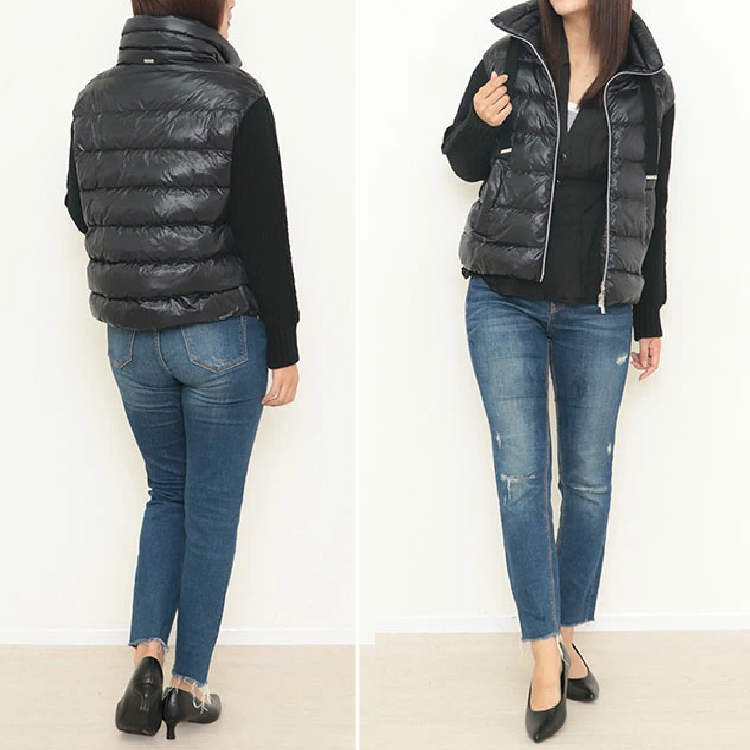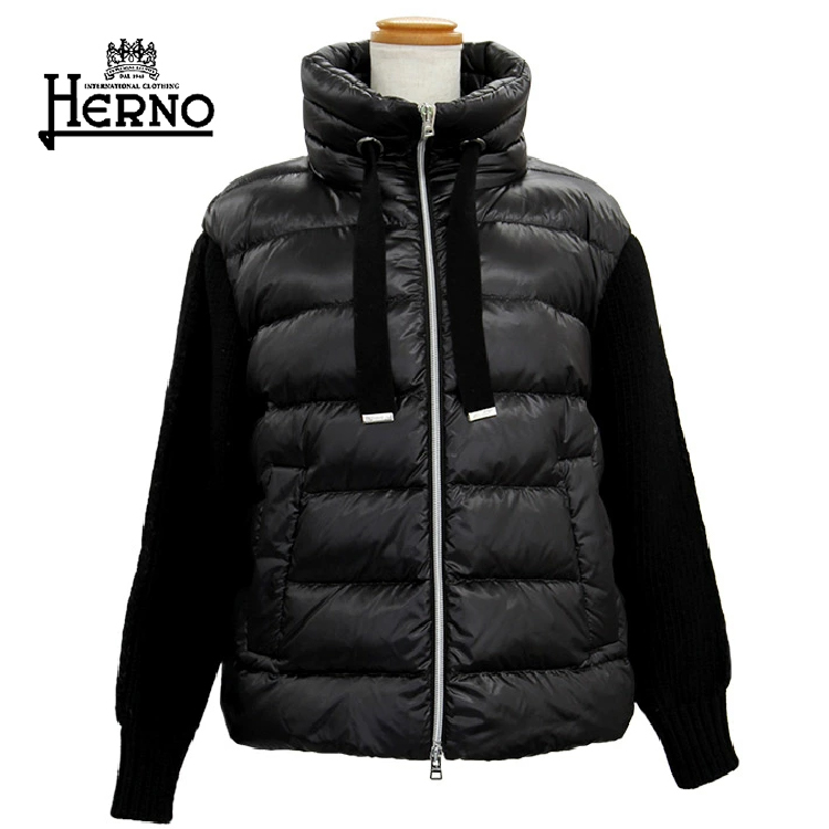 [ネット限定クリアランスセール]【HERNO】ヘルノ ニット&ナイロンウルトラライト切り替えダウンジャケット BLACK 38
