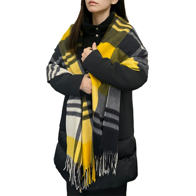 - トラディショナルなチェック柄は巻き方によって印象ががらっと変化し、寒い日の装いが一層楽しめます。