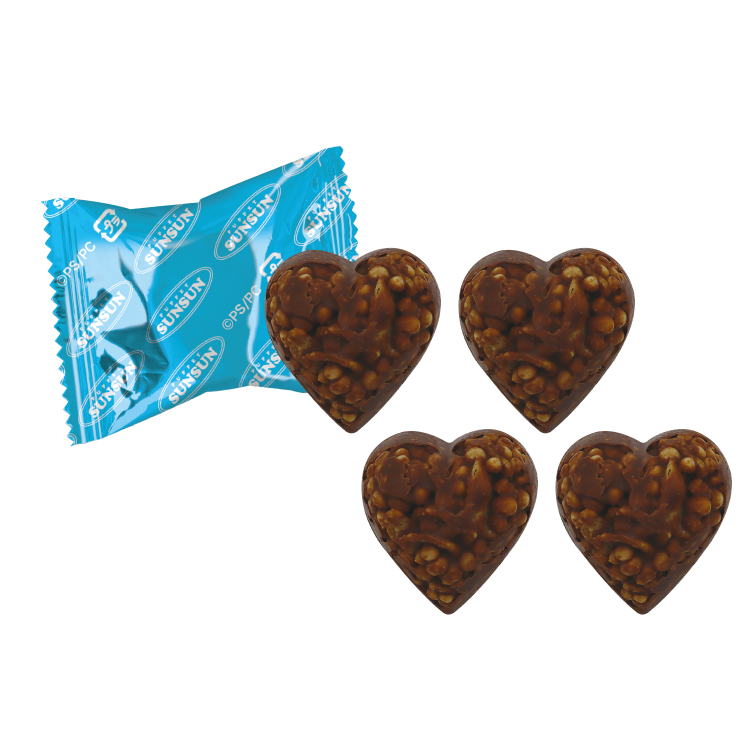 • スンスンの顔を大きくデザインした正方形の缶に、ハート形クランチチョコが4個入った商品です。