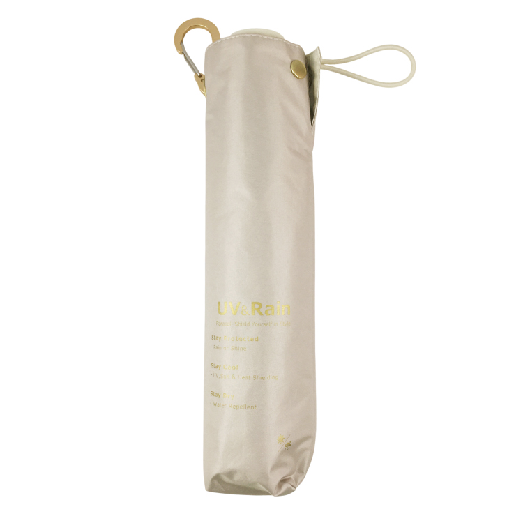 【RHYTHM BOX】リズムボックス 晴雨兼用 カラビナ付6本骨カーボン 軽量 ミニ グレージュ