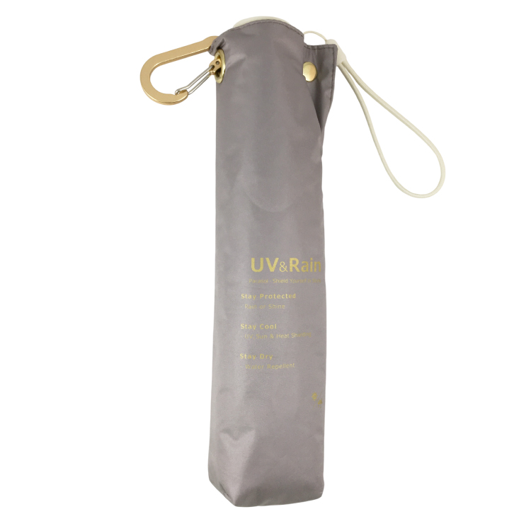 【RHYTHM BOX】リズムボックス 晴雨兼用 カラビナ付6本骨カーボン 軽量 ミニ グレイ