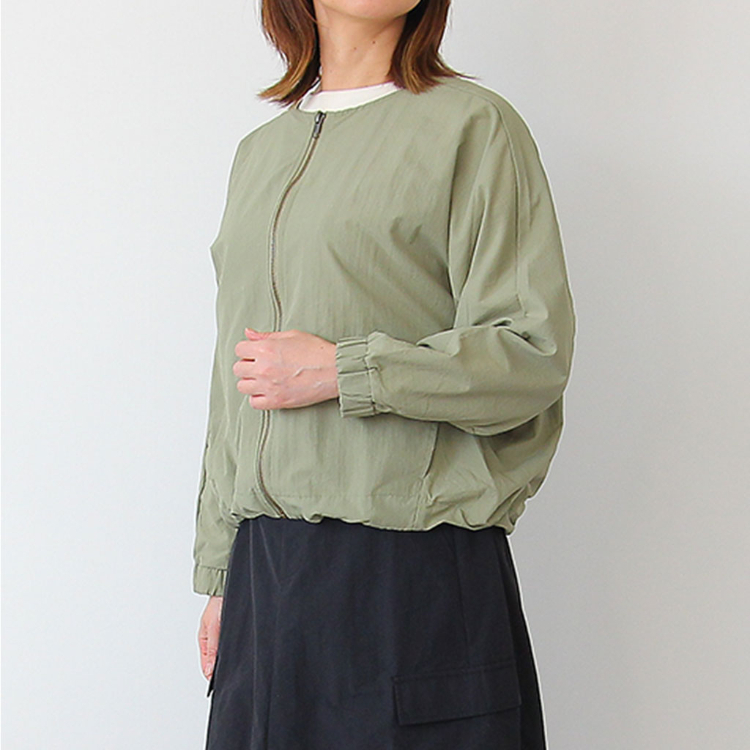 [半期に一度の大感謝SALE]【ironohi】撥水加工ナイロンノーカラーブルゾン グリーン M