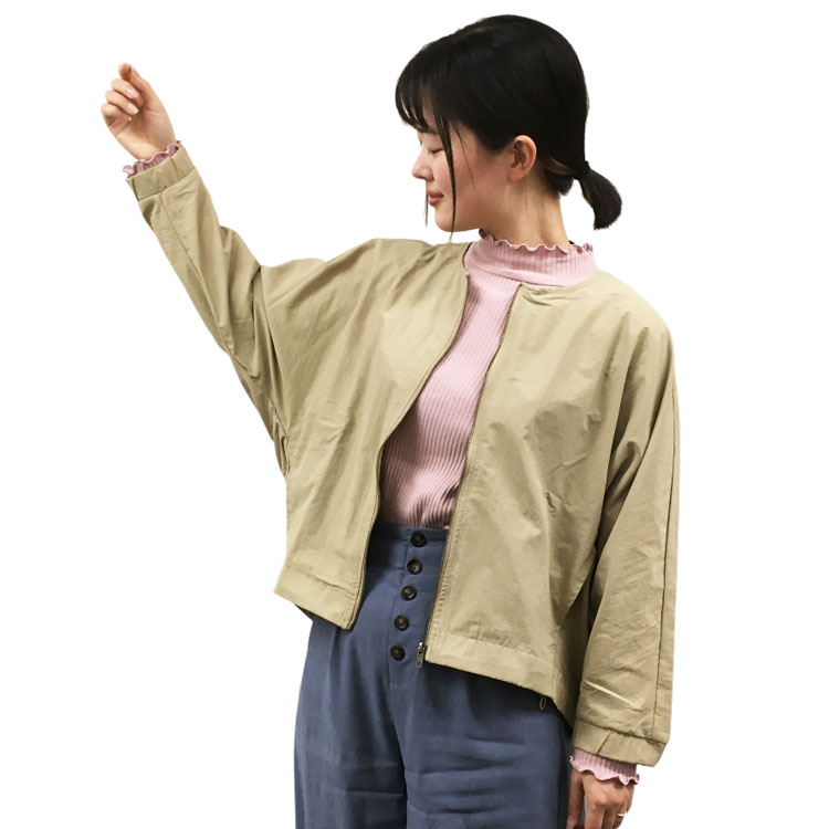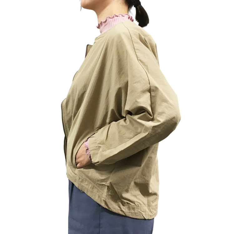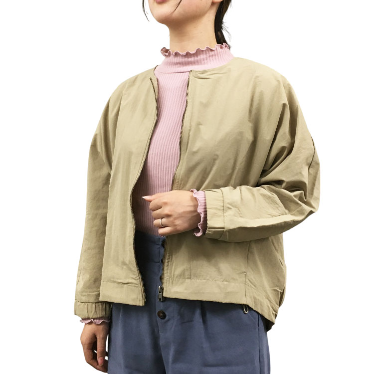 [半期に一度の大感謝SALE]【ironohi】撥水加工ナイロンノーカラーブルゾン ベージュ M