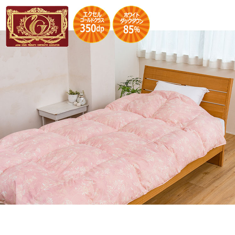 [半期に一度の大感謝SALE]羽毛合掛け布団 ホワイトダックダウン85% アトレ シングルロング ピンク