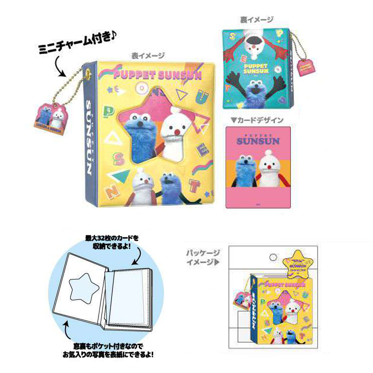 『パペットスンスン』からキャラクタのコレクトミニブックが登場! 最大32枚のカードが収納できます。