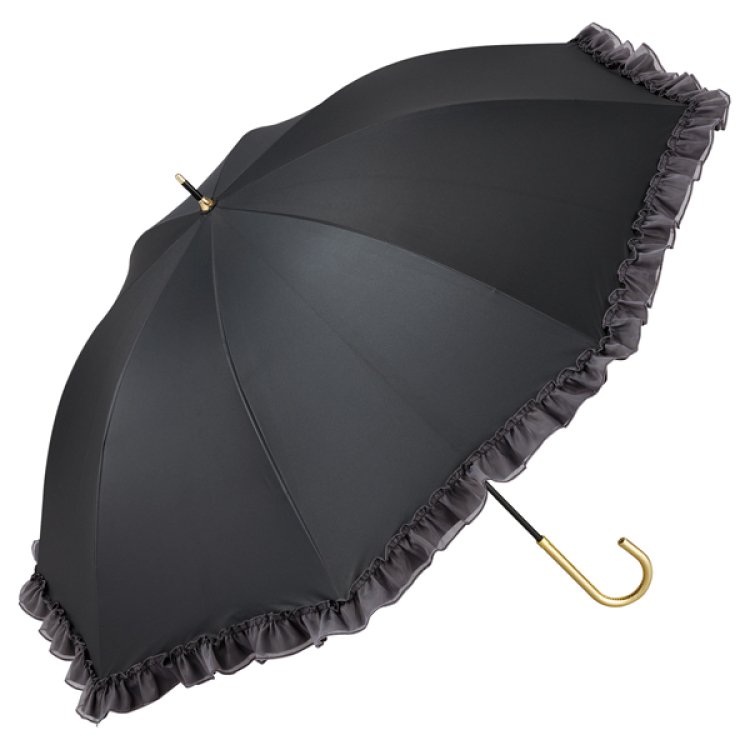 【Wpc.】遮光オーガンジーフリル 日傘 長傘 晴雨兼用 BK