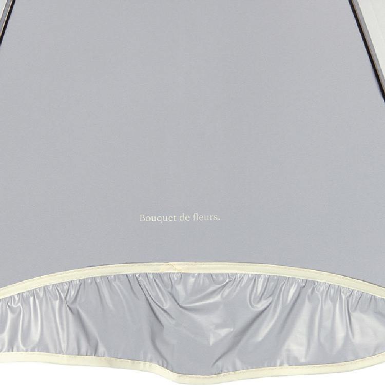 - 傘を閉じたときにフリルが花束のように見えることから、“bouquet de fleurs”(=フランス語で「花束」)のロゴをワンポイントとして添えました。
