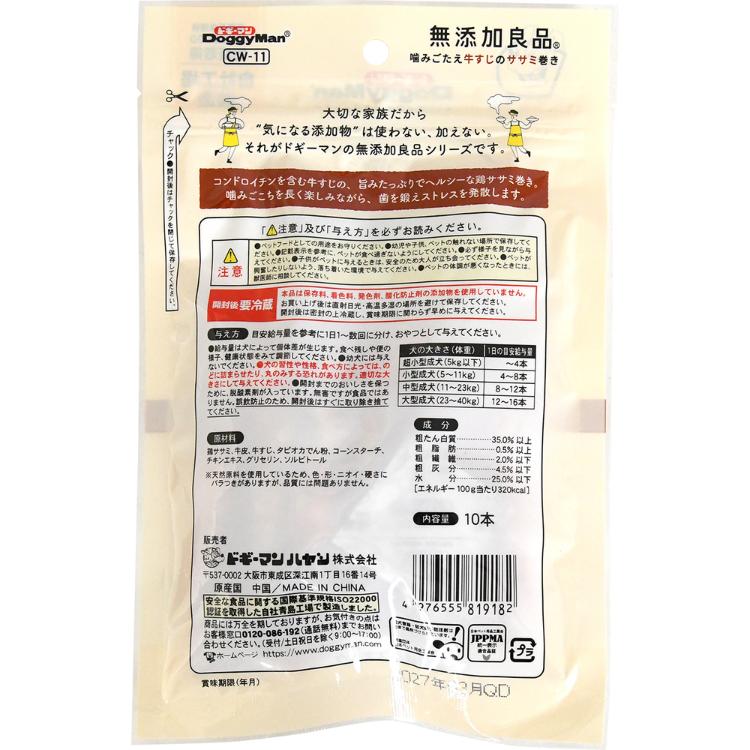 【DoggyMan】ドギーマン 無添加良品 噛みごたえ牛すじのササミ巻き10本