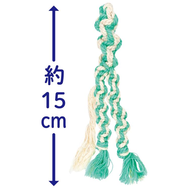 - ※犬種や犬の性格により、お気に入りの材質・形状・硬さのおもちゃを夢中で噛んで早く壊す場合があります。また、犬が予想以上の引っ張ると、長く噛み続けた部分などから破損する場合があります。※天然素材を手編みで加工しているため、色・形・サイズなどに多少バラつきがあったり、綿花のカケラなどが黒い点に見えることがあります。いずれの場合も品質に問題ありません。※仕様については予告なく変更する場合があります。