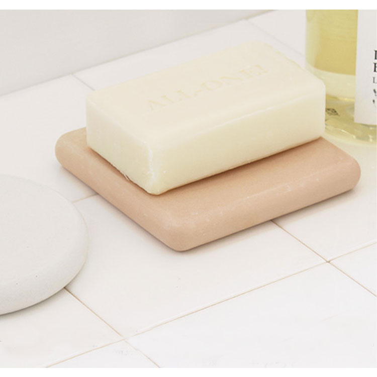 • 吸湿性の高い自然素材、珪藻土(けいそうど)でつくられた洗面台用石けん置きです。