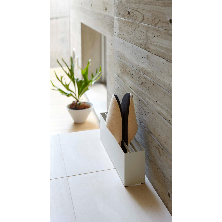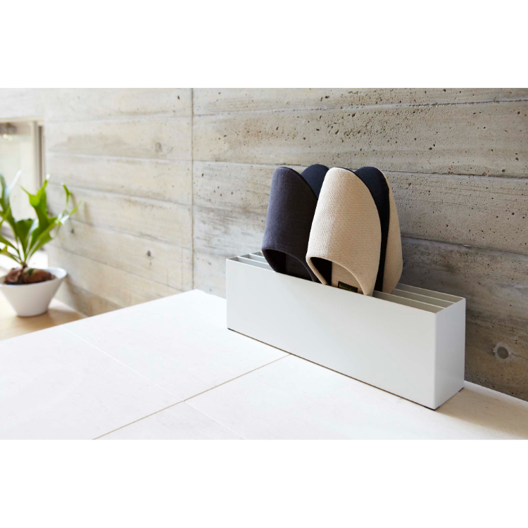 - 横置きのスリム設計だから玄関靴箱横や廊下やリビングなど場所をとらずすっきり収納できます。安定感もしっかりで使いやすさと機能性を重視したスリッパラック。
