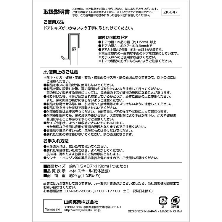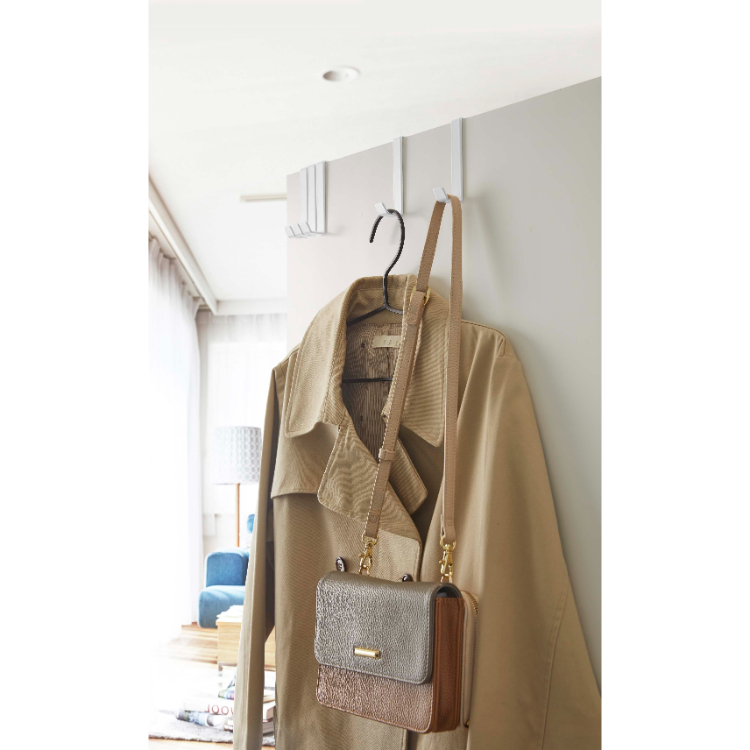 - クローゼットの折れ戸にも取り付けが可能なので、次の日着ていく服や鞄、毎日着る通勤・通学のスーツや制服を掛ければ、バタバタしがちな朝の身支度もスムーズに準備ができます。目に入りやすい位置に引っ掛けられるので、忘れ物防止にもなります。
