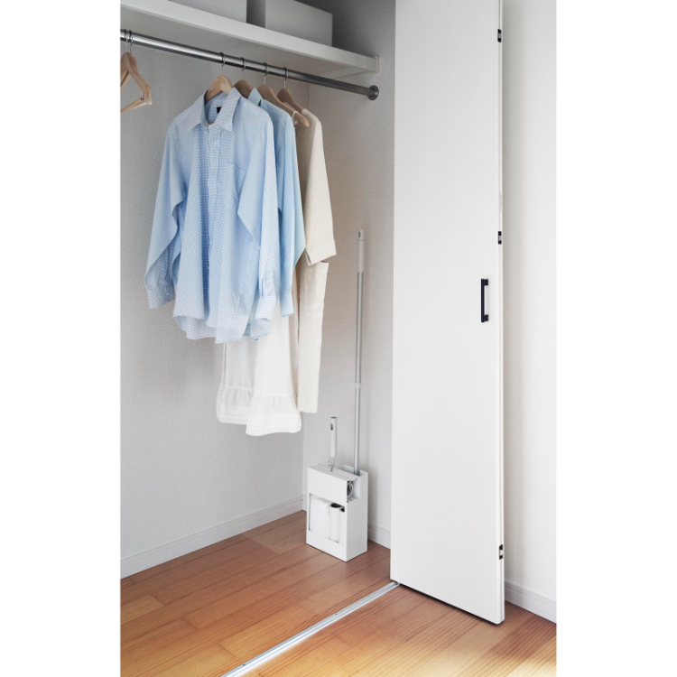 • 生活感の出てしまいがちなハンディワイパー、フローリングワイパー、カーペットクリーナーをまとめて収納できるスタンドです。シンプルでスタイリッシュなデザインなのでお部屋のどこに置いても掃除道具を美しく収納することができます。