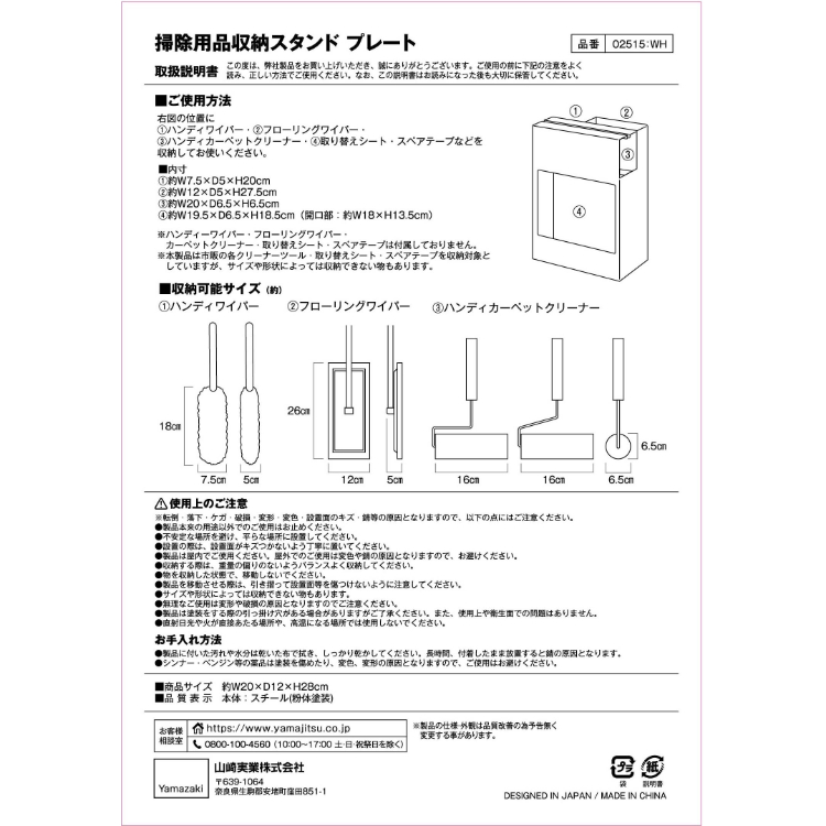 山崎実業 Plate 掃除用品収納スタンド ホワイト