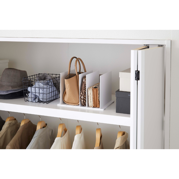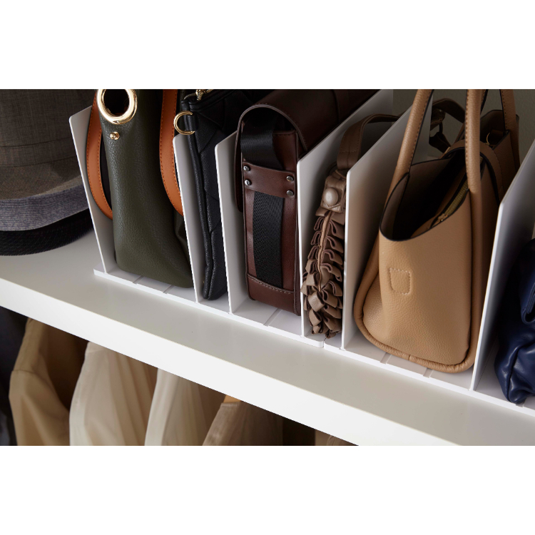 • 鞄のサイズや種類に合わせて仕切り幅を調整できます。倒れやすい鞄も立てて収納できるから、場所を取らずにスリムな収納が可能です。