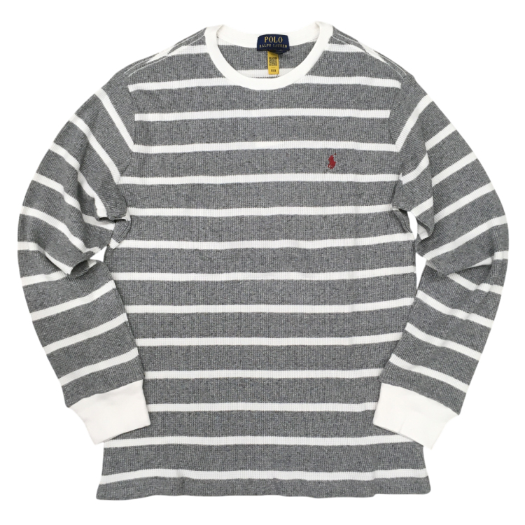 【POLO LALPH LAUREN/ポロラルフローレン】ボーダーサーマル長袖Tシャツ グレー ボーイズXL