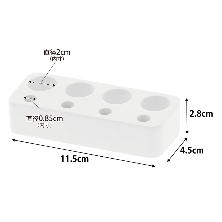 • 省スペースで場所を取らないシンプルな形です。2つの穴が行き場の困った洗面所周りの小さな小物を整理整頓してくれます。