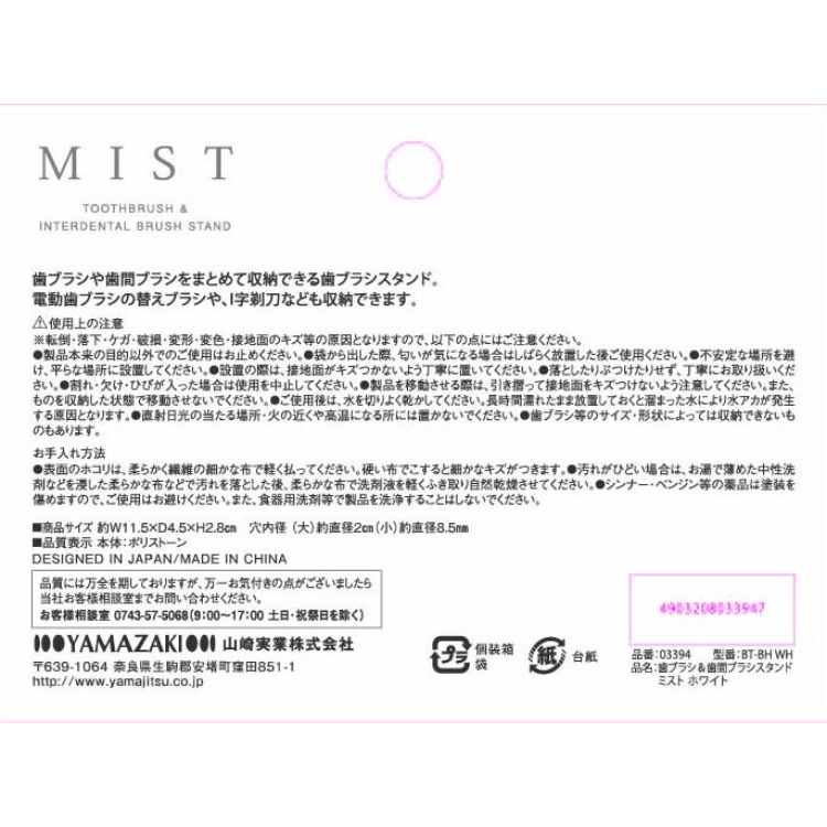 山崎実業 MIST 歯ブラシ&歯間ブラシスタンド ミスト ホワイト