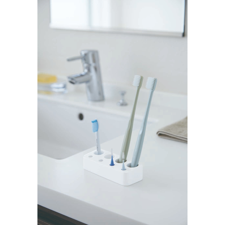 • 歯ブラシや歯間ブラシをまとめて収納できる歯ブラシスタンドです。電動歯ブラシの替えブラシや、I字カミソリなども収納できます。