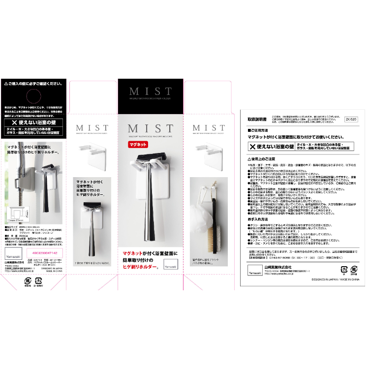 • マグネットが付く浴室壁面に簡単取り付けのヒゲ剃りホルダー。
