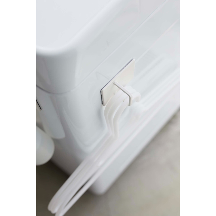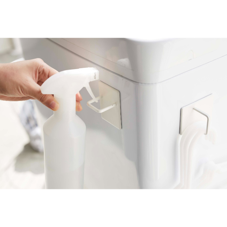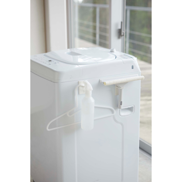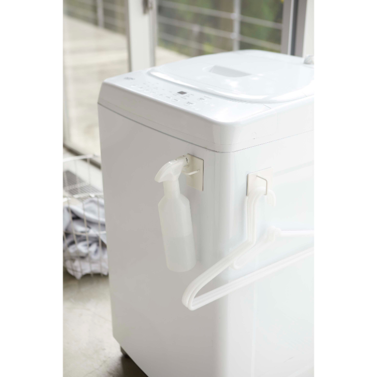 - 洗面所や脱衣所で置き場所に困りがちな掃除用品やハンガーなどを洗濯機に取り付けて収納できます。