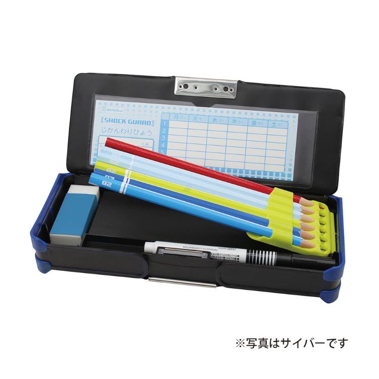 - 衝撃に強く、机からすべり落ちにくい素材が筆箱を守ります。
