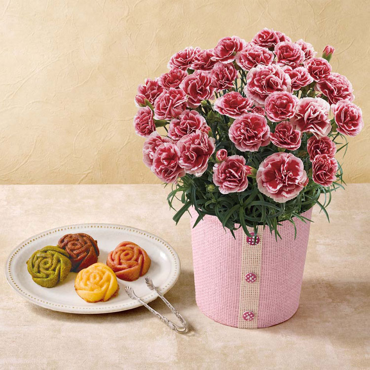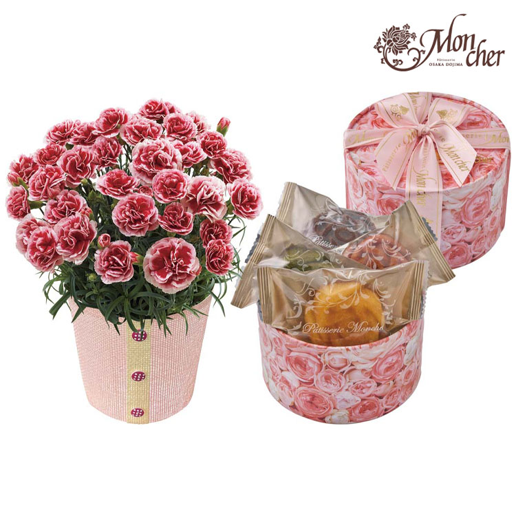[母の日ギフト]カーネーション(いちごホイップ)と「パティスリー モンシェール」エタニティーローズ C40-2 81008