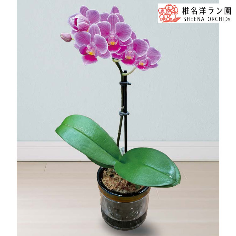 - 蛍光ピンクの花弁に濃い目のピンクの筋が入るかわいらしい花色が特長的な品種の胡蝶蘭です。