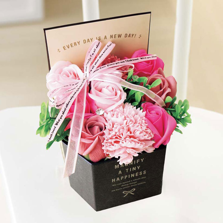 - せっけん素材で作られた人気のシャボンフラワー。やさしいシャボンの香りをお楽しみいただけます。ボックスから溢れるような豪華なデザインです。