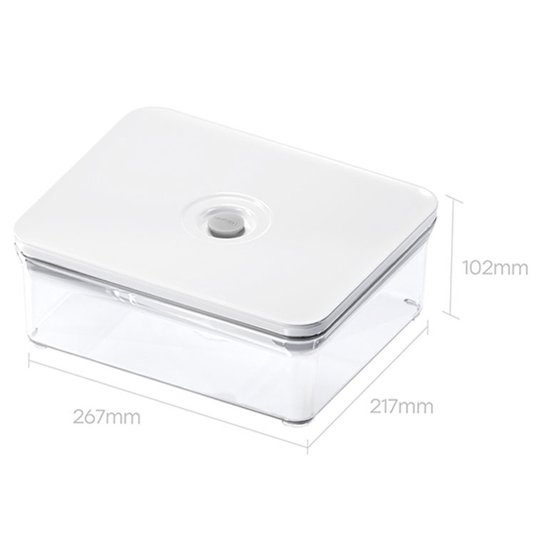 また、長時間ケーブルを差し込んだままにすると故障の原因となるほか、バッテリーの寿命が短くなるおそれがあります。●通常、真空はボタンを押してから数秒から10秒程度で作られますが、容器のサイズや入れる食材の量によっては、これより長くかかる場合があります。●作動中に任意で中断したい場合は、再度電源ボタンを押してください。●真空ポンプの作動が止まった状態で再度電源ボタンを押すと、容器が気圧差に耐えきれず破損するおそれがあります。絶対におやめください。●食材がエアバルブの内側に接触していたり、近すぎる場合、真空になるまで時間がかかったり、バルブが外れてしまう原因となることがあります。食材の位置にはご注意ください。●シリコンパッキン部分に粉ものや汚れが付着していると、蓋がきちんと閉まらなかったり、真空状態が不安定になったりすることがあります。ご使用前に、シリコンパッキンと容器の接着面をきれいに拭き取り、汚れを取り除いてからご使用ください。●バナナ、漬物、キムチ、焙煎したてのコーヒー豆など、ガスを多く排出する食材の真空保存は推奨しておりません。ガスが容器内に溜まることによって、かえって食材の劣化が早まる恐れがあります。また、容器内のガスで蓋が押し上げられ、真空状態が解除される恐れがあります。使用する場合は、こまめに状態を確認し、必要に応じて再度真空処理を行ってください。ガスを多く発生する食材を保存する際は、保存途中で蓋を開けて中の状態を確認してください。●食品の劣化速度は保存環境・食材の個体差により異なります。画像は保存状態の一例であり、食用の安全性を保証するものではありません。食品衛生上、安全に食べられるかどうかは、状態をよくご確認の上ご判断ください。賞味期限・消費期限がある食品は、必ず表示に従ってください。●シリコン部分は素材の特性上、においや色が移る場合があります。においや色移りが気になる場合は、長時間直射日光にさらすことで軽減されることがあります。