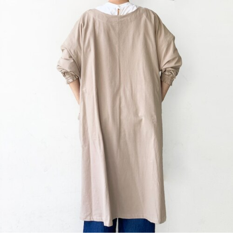 FABORI クリンクル ロングギャザーかっぽう着 ベージュ