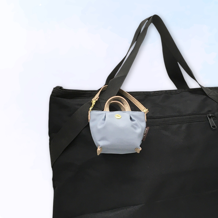 肩楽ショルダーを、そのままミニサイズにしたようなバッグチャーム